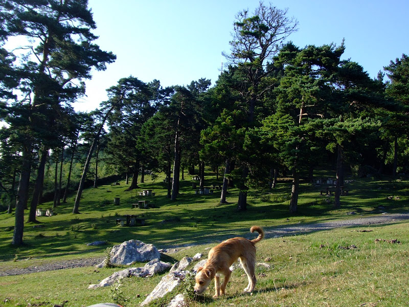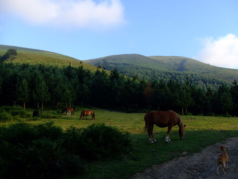 Llegamos a un collado donde a mano izquierda tenemos el Ganekogorta y a mano derecha el Gongeda. Jara y sus amigos los caballos, a los que no para de incordiar